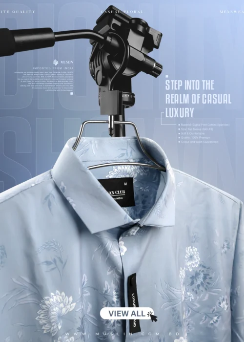 Muslin’s Indian Fabric’s Digital Print Shirt | Sky